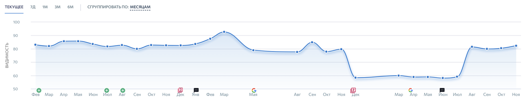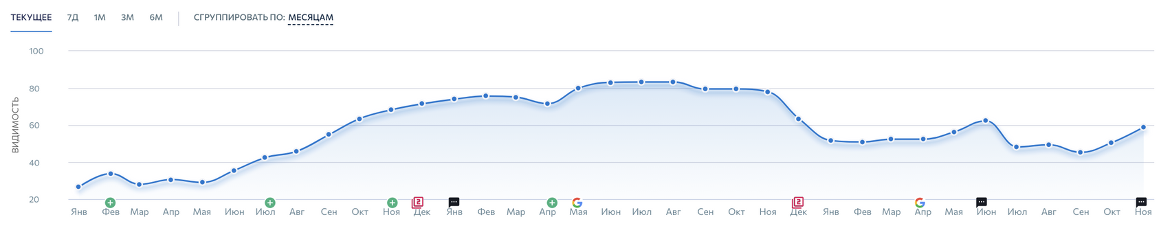 Возвращаясь к вопросу, что большего всего могло повлиять. На мой взгляд, когда мы избавились от большого количества старых разделов, это сильно нас бустануло. А после декабрьского апдейта мы очень сильно проработали техничку и многое переделали.