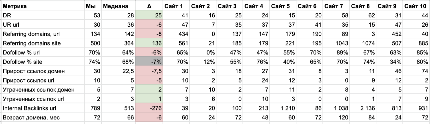 —  По конкурентам мы смотрим на ссылочные факторы, какой у них вес. Был ли там какой-то буст. Плюс все прекрасно понимают, что не все продвигаются «белыми» методами, т.е. есть что-то, что мы не видим. Но за годы работы в тех или иных нишах уже знаем, по каким критериям можно понять, например, где сетка PBN, а где люди «стараются», если можно так сказать.